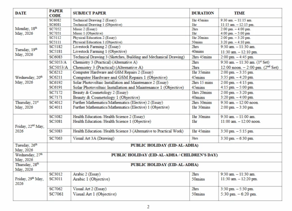 - WAEC Timetable 2026 for Private Candidates | All to Know